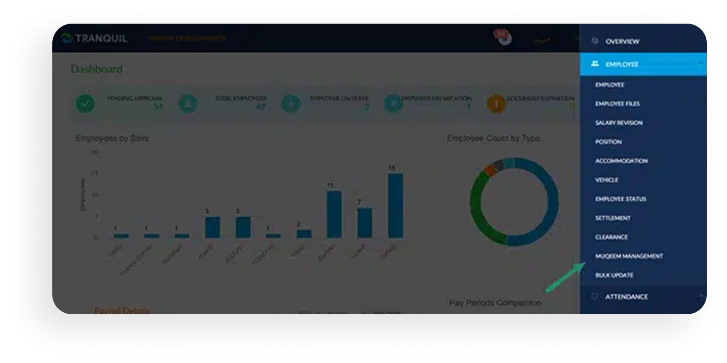 Import employee Iqama data into the HR module, set automated expiry reminders, follow built-in renewal checklists, complete actions via your Muqeem account and track progress and generate compliance reports.