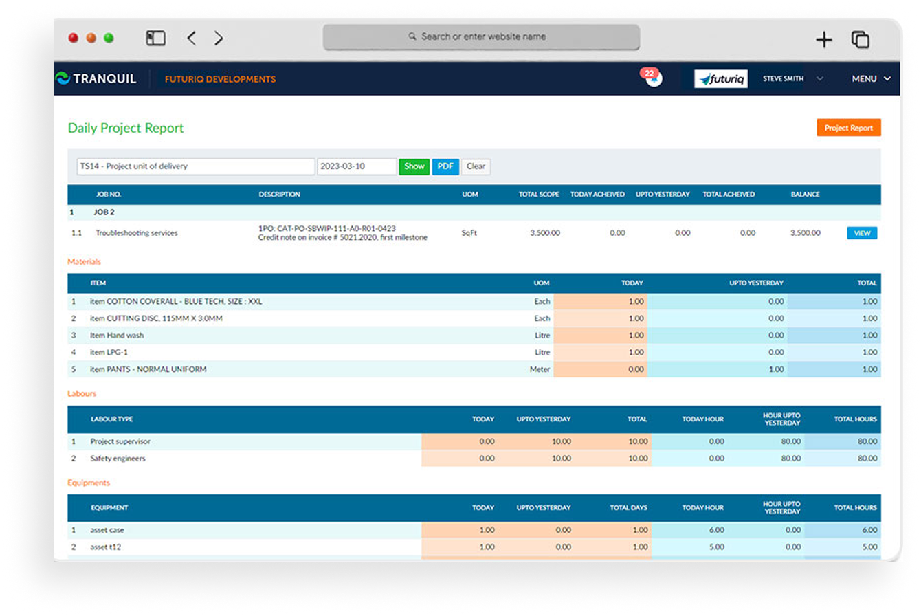 Manage complex projects confidently with Cquens ERP. Schedule entire teams and equipment with just one click, live track your project’s progress and control your costs for better profits.Create deposits, requests for claim, progress claims and retention claims in minutes, not hours, as they are quickly and easily populated with all relevant job data.