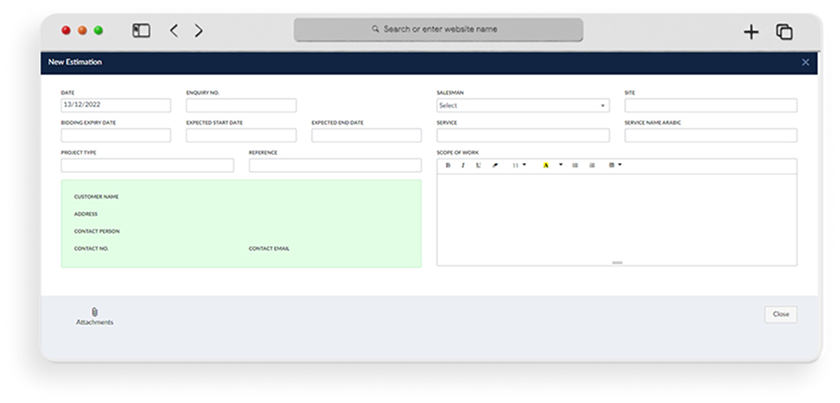 Estimate management components that save business owners the most time and effort, while also improving sales and customer management using our ERP software for job estimating. Cquens job estimating ERP software has several features that improve your ability to manage potential customers and sales. With Cquens ERP you can assign sales reps to any open account, engage and view prospective customers, capture demographic information for marketing management and segment customers by type, address and more.