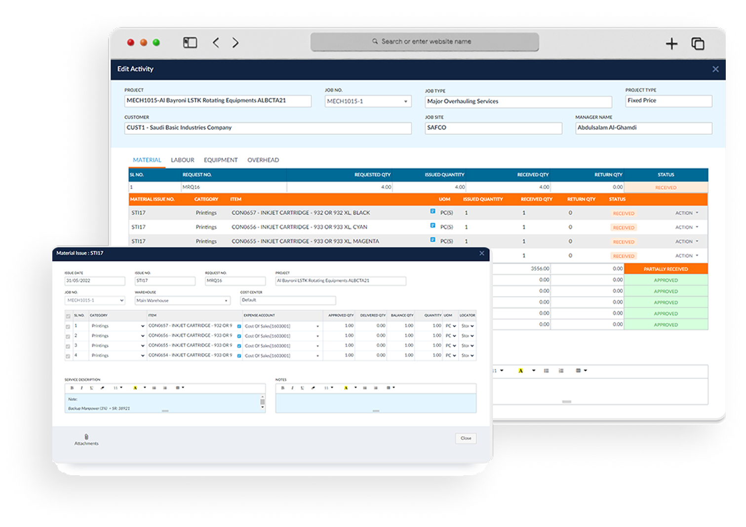 Track jobs, materials and technicians
