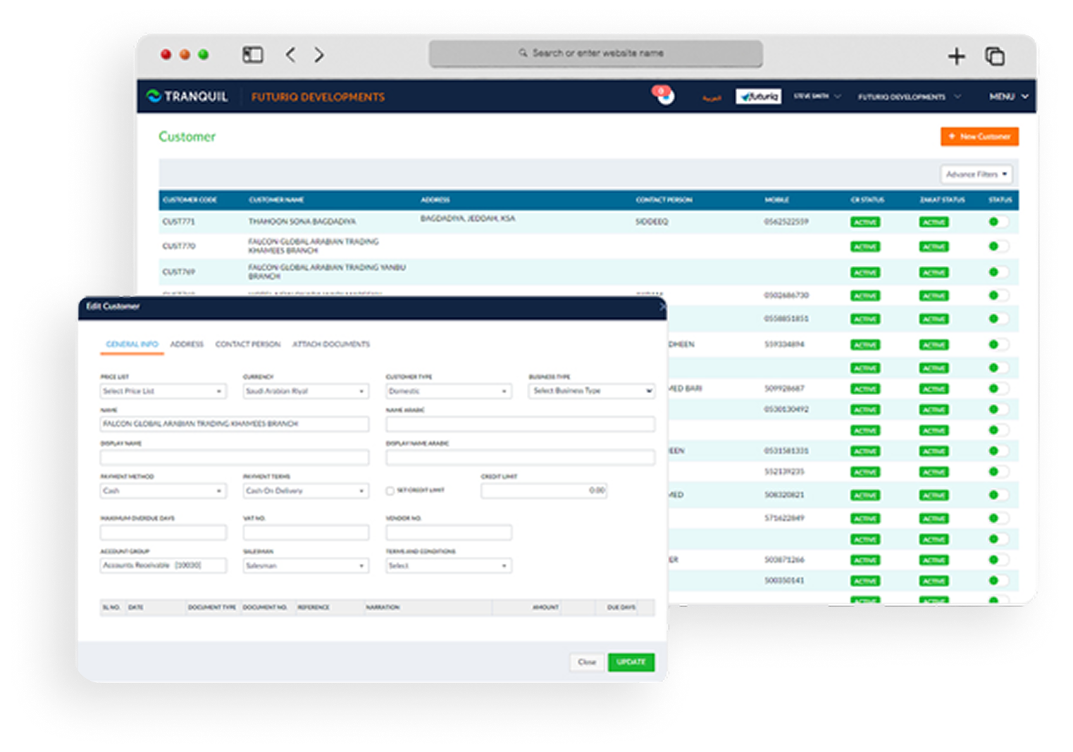 You also get live status on the dashboard regarding the expiration information of the customer’s company registration and the Zakath registration.